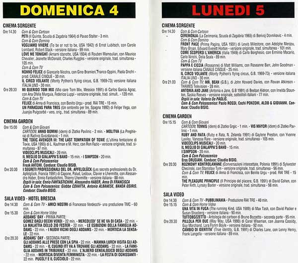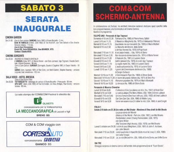 COM&COM ANTENNA – parte della programmazione del festival fu proposta e approfondita direttamente sul piccolo schermo, grazie a Rai3, ItaliaUno e Tele+1