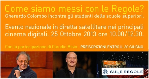 Stimo profondamente Gherardo Colombo. Lo stimavo quando faceva con onestà e discrezione il suo lavoro di magistrato, durante il quale ha maneggiato alcune delle inchieste più scottanti del nostro paese (dalla scoperta della Loggia P2, al delitto Ambrosoli e Mani pulite). L’ho stimato nel momento in cui ha deciso di dare le dimissioni dalla magistratura perché, come dice lui, “la giustizia non può funzionare se i cittadini non hanno un buon rapporto con le regole” e, quindi ha deciso di dedicarsi alla riflessione sulla relazione tra i cittadini e le regole. Come? Incontrando dai 40.000 ai 50.000 ragazzi l’anno, in ogni parte d’Italia, ovunque lo invitino, per parlare di giustizia e della relazione tra regole e persone e di come questa relazione influisca sulla vita pratica di ciascuno di noi. Io l’ho conosciuto così. Un giorno, infatti, mia figlia Alice, che allora aveva 10 anni, tornò a casa con un libretto: Gherardo era andato nella sua scuola elementare a parlare con i bambini di quinta elementare e aveva regalato a tutti una copia della Costituzione Italiana. Da allora siamo amici. E quando nel 2010 ha fondato l’Associazione Sulle Regole mi sono subito iscritto. E sono sempre molto felice quando mi coinvolge in qualche sua iniziativa.