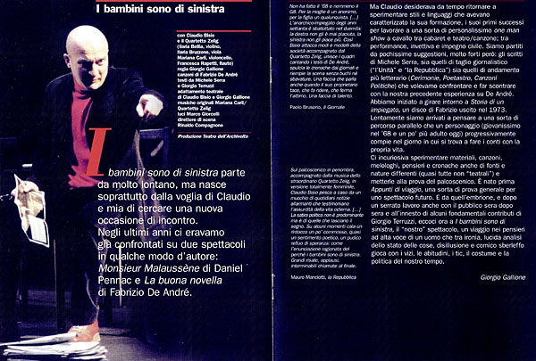 - Testo: di Michele Serra, Giorgio Terruzzi, Claudio Bisio, Giorgio Gallione, Gigio Alberti