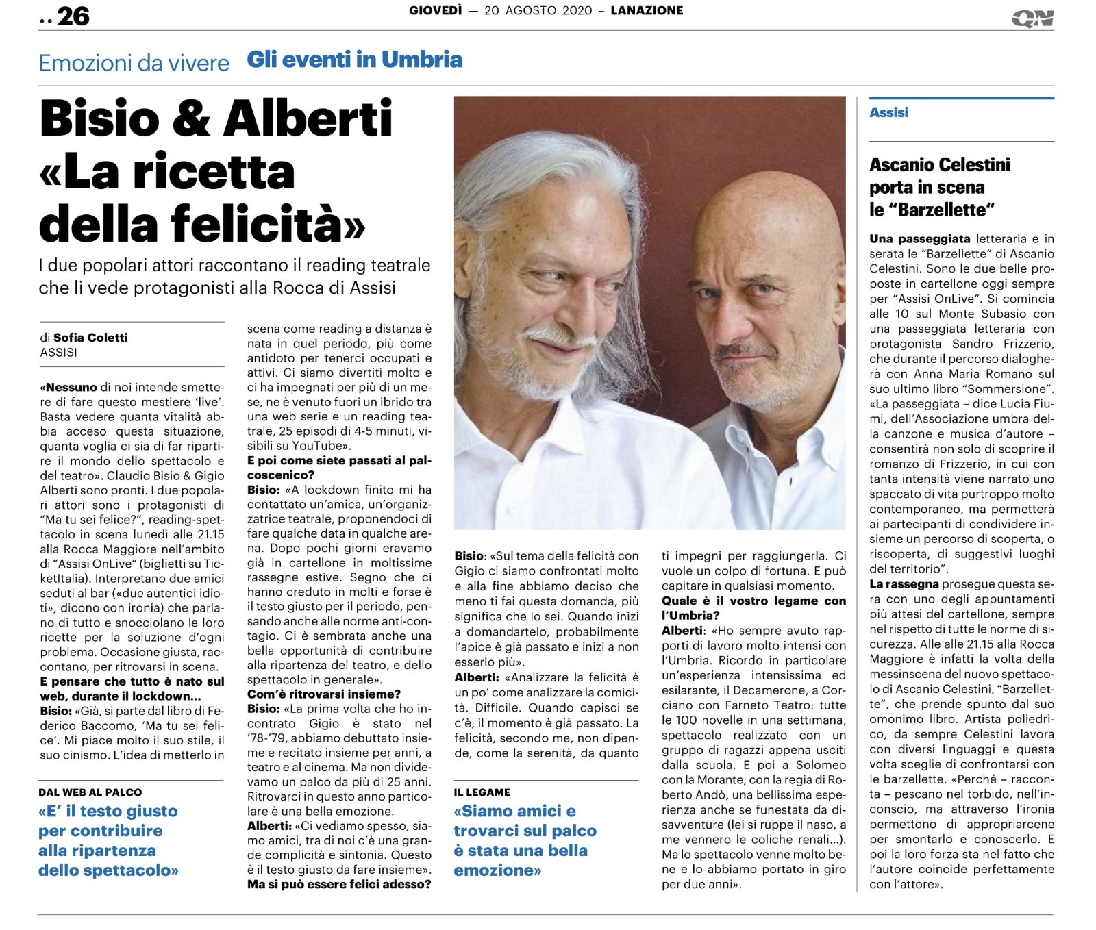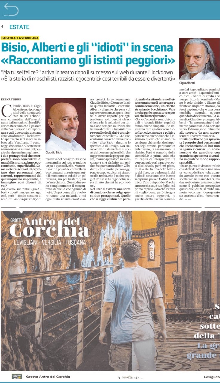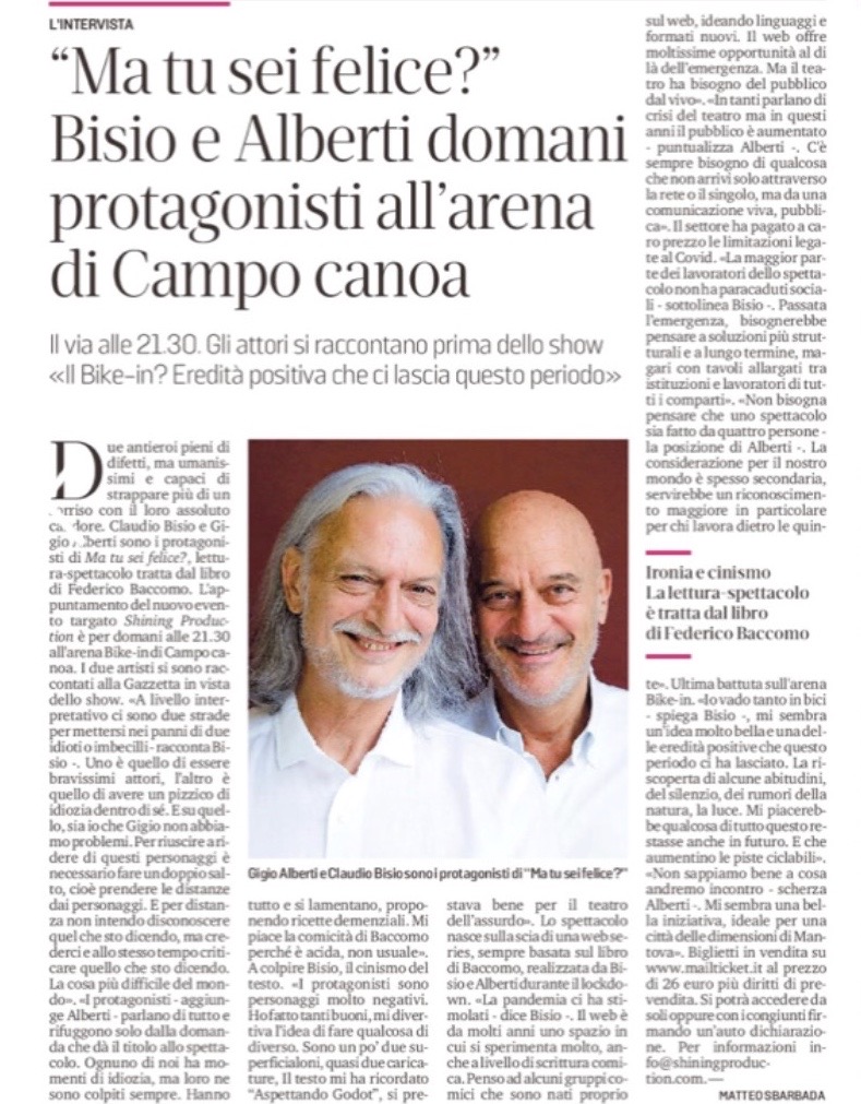Quella stessa domanda, è passata dalle pagine del libro di Federico Baccomo (Solferino, aprile 2019) alle immagini della web series estemporanea, realizzata da Claudio Bisio e Gigio Alberti durante il lockdown (YouTube/ClaudioBisio, aprile 2020), quando hanno deciso di vestire i panni di Vincenzo e Saverio e mettere in scena “a distanza” le loro chiacchiere da bar.
